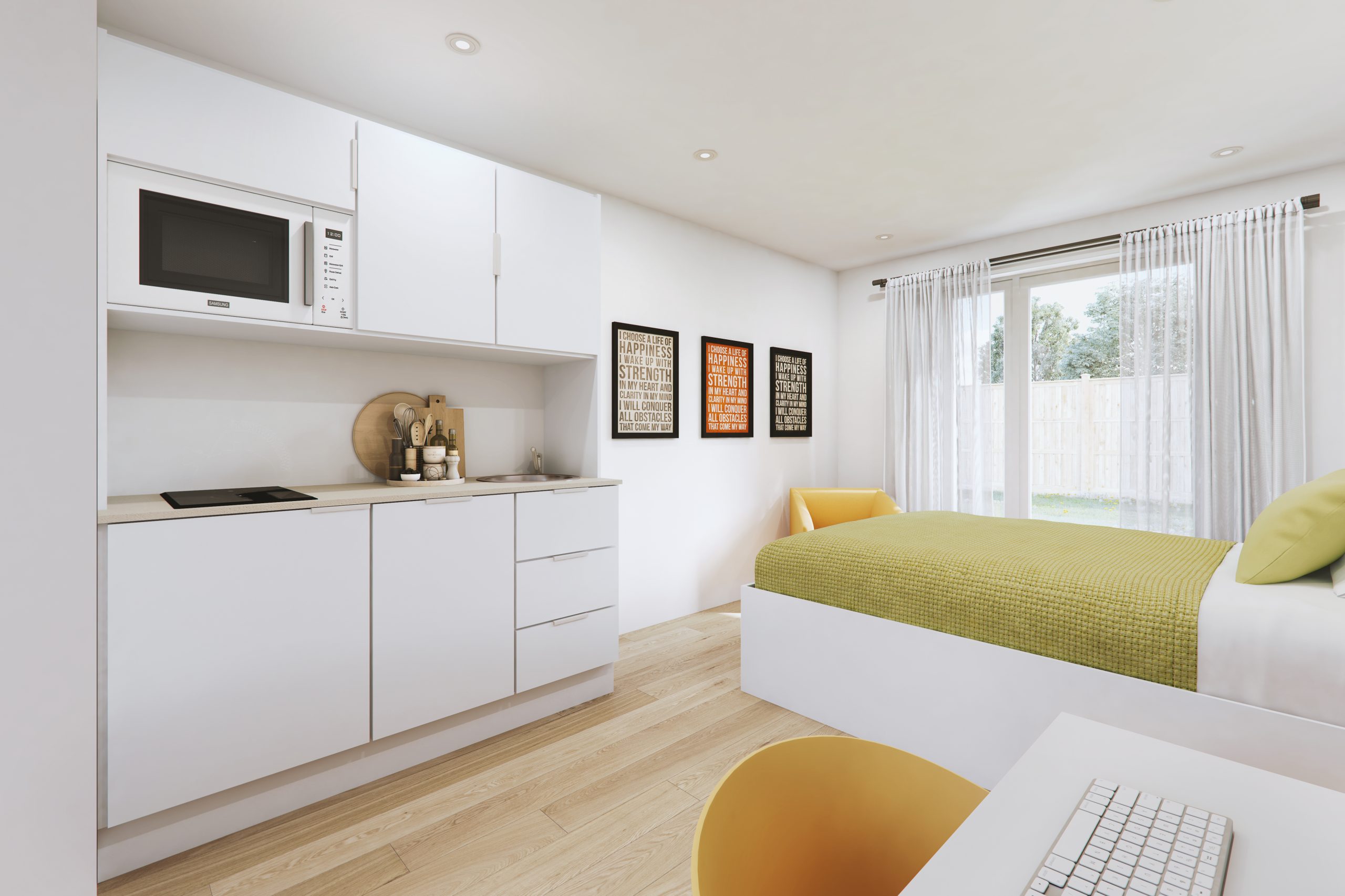 Kitchenette modules are complemented with stylish pre-cut quartz stone worktops and are fully customisable to your specific design and specification requirements.
